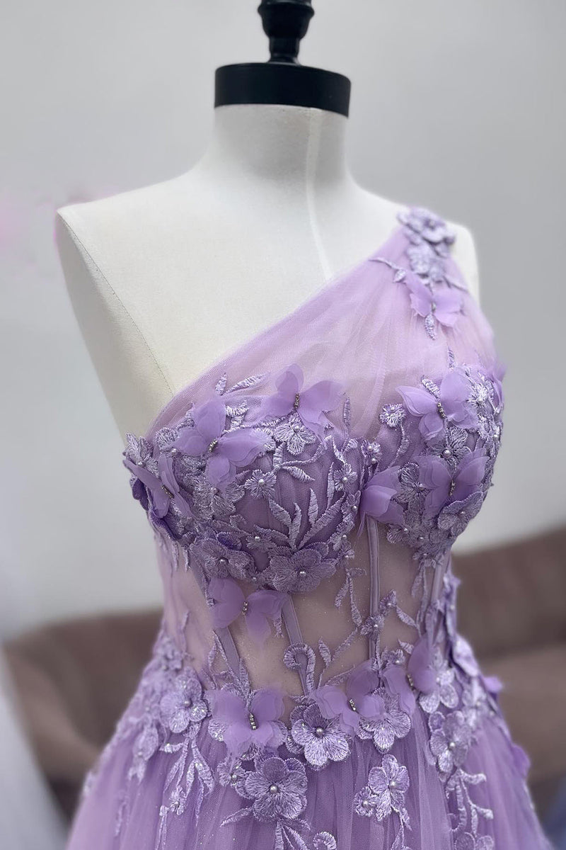 Blue A Line One Shoulder Long Corset Formal Dress With Appliques