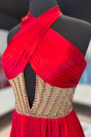Royal Blue Halter Satin A-Line Formal Dress with Slit