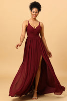 Made of chiffon fabric, this chiffon v-neck bridesmaid dress is timeless. Booty ruching creates a flattering silhouette, while a high slit skirt lets you move with ease.