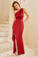 Burgundy One Shoulder Long Bridesmaid Dress