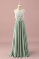 Green Lace and Chiffon Halter Junior Bridesmaid Dress