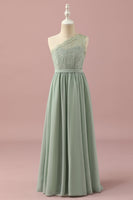 Green One Shoulder Lace and Chiffon Junior Bridesmaid Dress