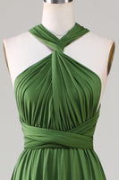 Olive Green Spandex Convertible Wear Long Bridesmaid Dress