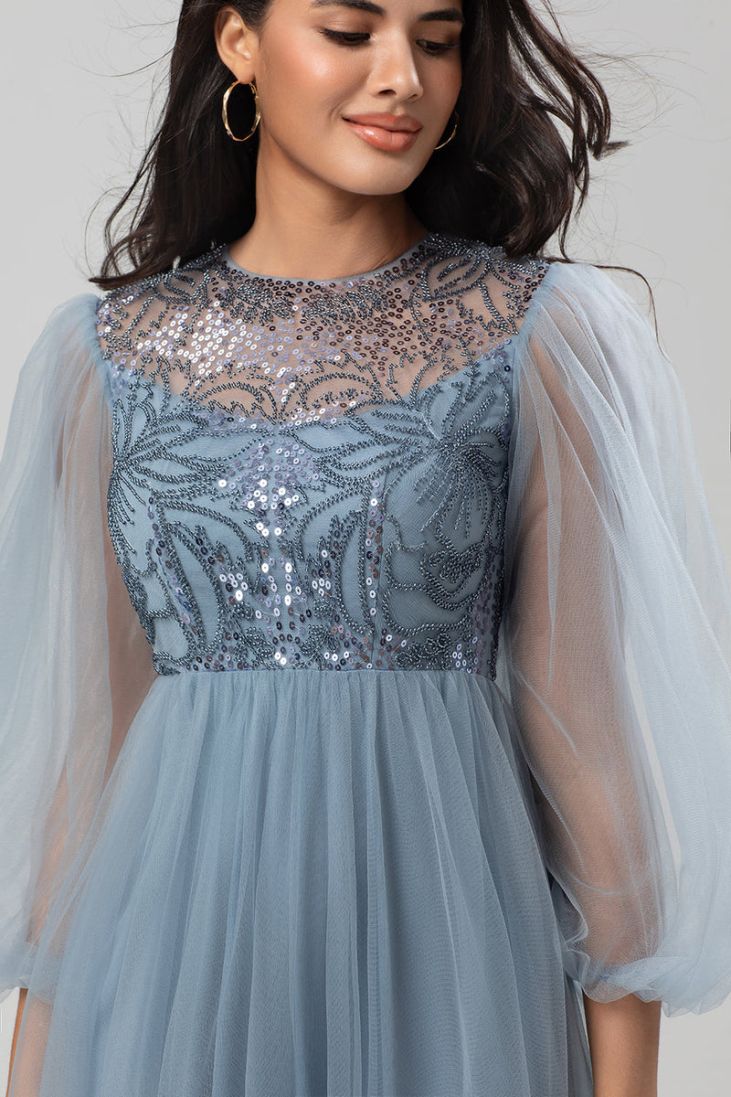 Sequins Dusty Blue Bridesmaid Dress with Long Sleeves