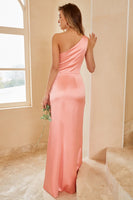 Peach One Shoulder Bridesmaid Dress with Ruffles