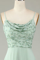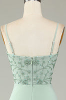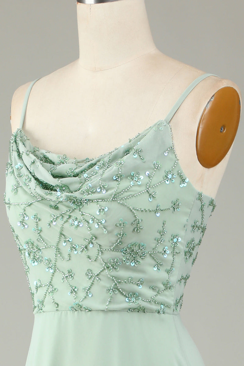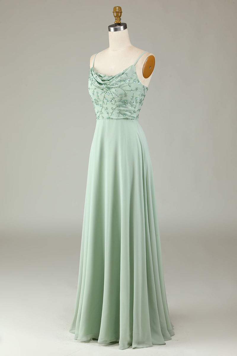 Spaghetti Straps Beaded Dusty Pink Bridesmaid Dress