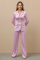 Pink 2 Piece Double Breasted Satin Women Prom Suits