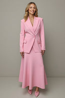 Pink Peak Lapel 2 Piece Women Prom Skirt Suits