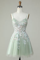 Cute A Line Spaghetti Straps Light Green Short Formal Dress with Appliques