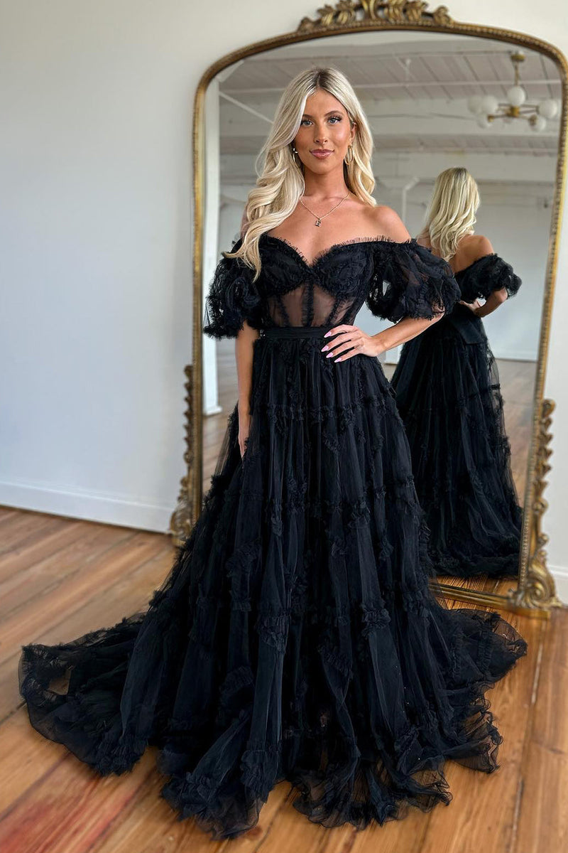 A Line Off the Shoulder Red Tulle Corset Formal Dress with Bowknot